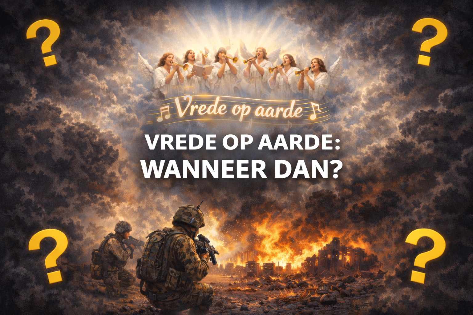 Als we de geschiedenis gaan onderzoeken, dan zijn er geen perioden van vrede op aarde geweest. Altijd was er wel ergens een opstand, strijd of oorlog aan de gang. Momenteel is het zo dat door de huidige manier van berichtgeving de oorlog zelfs je huiskamer binnenkomt. Wat zal het een blijdschap geven als er geen oorlog meer is te verslaan (reportages bedoel ik daarmee).Is het 'gezang' van de engelen profetisch geweest?